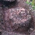 Mit Hilfe eines Minibaggers oder von Hand mit dem Spaten (siehe Drainagespaten), einen schmalen, 65 cm tiefen Graben ausheben.